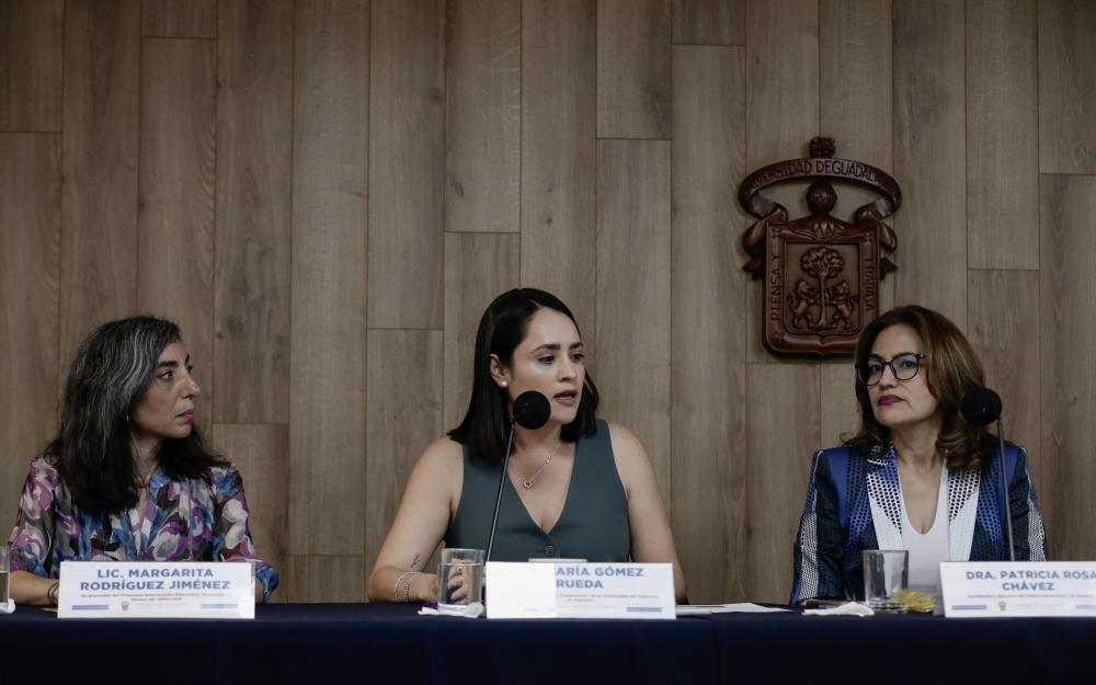 En la rueda de prensa participaron también: la doctora Sara Poot Herrera, integrante de la Academia Mexicana de la Lengua; y la licenciada María Rueda Gómez, Coordinadora General de Construcción de la Comunidad del gobierno de Zapopan, quien declaró que se espera que más de mil 800 alumnos participen en dicho performance, las pláticas y talleres sobre el acompañamiento y la protección a las víctimas.