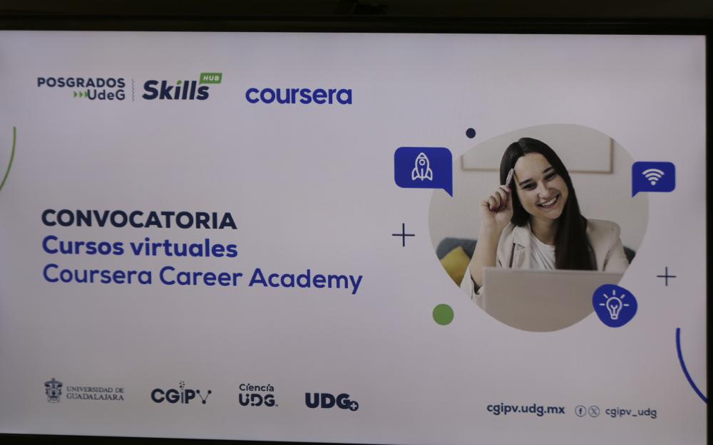 Brindar la oportunidad a los estudiantes de posgrado de la Universidad de Guadalajara (UdeG) para generar habilidades y una educación integral es la finalidad de “Coursera career academy”, que ofrecerá 170 programas mediante la Coordinación General de Investigación, Posgrado y Vinculación (CGIPV).