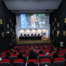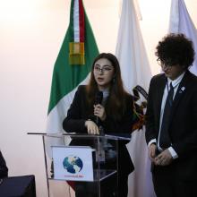 Para finalizar la actividad, Izábal Martínez presentó la “Agenda 2030” expuesta por la ONU, con el fin de familiarizar a los jóvenes sobre las preocupaciones mundiales y mediante la proyección de un video, António Guterres, Secretario General de la ONU, agradeció a los jóvenes su participación y envió un mensaje para impulsar la solidaridad mundial y forjar la paz.