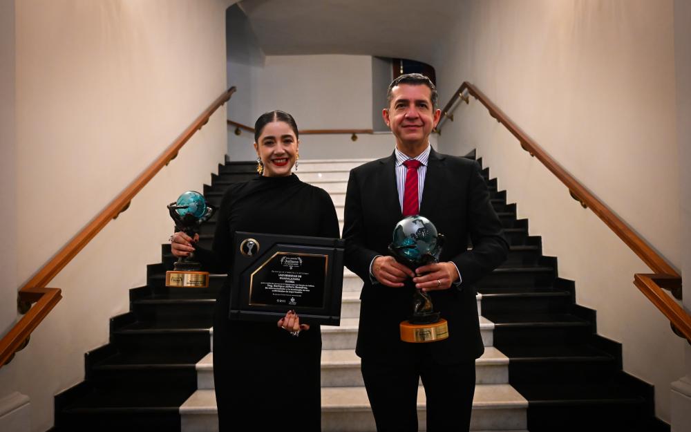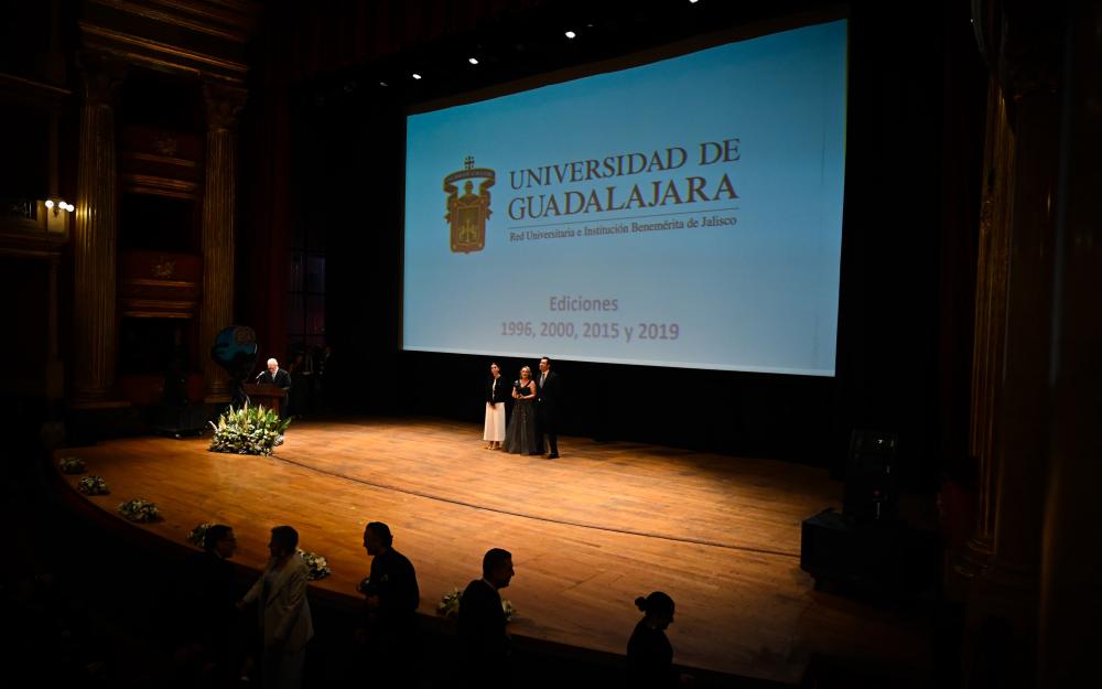 El Rector del CUCEA, maestro Luis Gustavo Padilla Montes, recibió el premio en nombre de la UdeG, que contribuye al desarrollo del Estado.