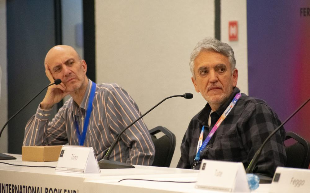 Dentro del programa de actividades de FIL Literatura y el XX Encuentro Internacional de Caricatura e Historieta (EICH), se llevó a cabo la mesa “¿El humor gráfico en vías de extinción?”, en la que tomaron parte Tute, caricaturista argentino y creador de la tira diaria “Mabel y Rubén”; Trino, monero tapatío con una larga carrera en medios electrónicos e impresos; Jis, fundador de Galimatías y caricaturista tapatío, y Feggo, quien trabajó como ilustrador e investigador en el Archivo General de la Nación y el Museo de Culturas Populares, a la vez que daba a conocer sus caricaturas e ilustraciones en diversas publicaciones.