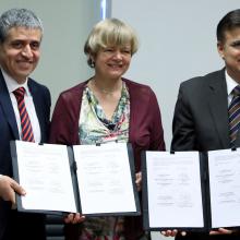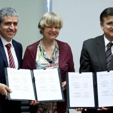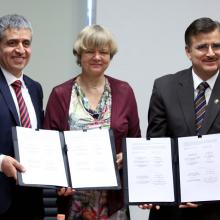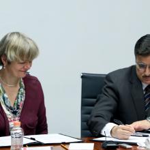El Rector General de la UdeG, maestro Itzcóatl Tonatiuh Bravo Padilla y la doctora Ute Clement, vicerrectora de la Universität Kassel, suscribieron el documento que contempla la colaboración en áreas como el intercambio de estudiantes y personal académico, desarrollo de proyectos de investigación, así como diseño de cursos, conferencias, simposios, diplomados, programas de formación y actualización, entre otros.
