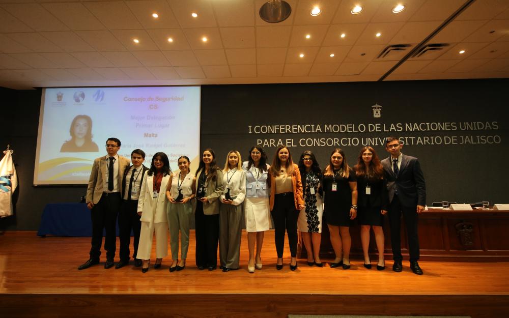 La Universidad de Guadalajara ganó los primeros lugares de la primera Conferencia Modelo de las Naciones Unidas para el Consorcio Universitario de Jalisco (JaliscoMUN2023), que tuvo como sede a esta Casa de Estudio y que reunió, del 3 al 6 de octubre, a estudiantes de la UdeG, la Universidad del Valle de Atemajac (UNIVA), el Instituto Tecnológico de Monterrey (TEC), y la Autónoma de Guadalajara (UAG).