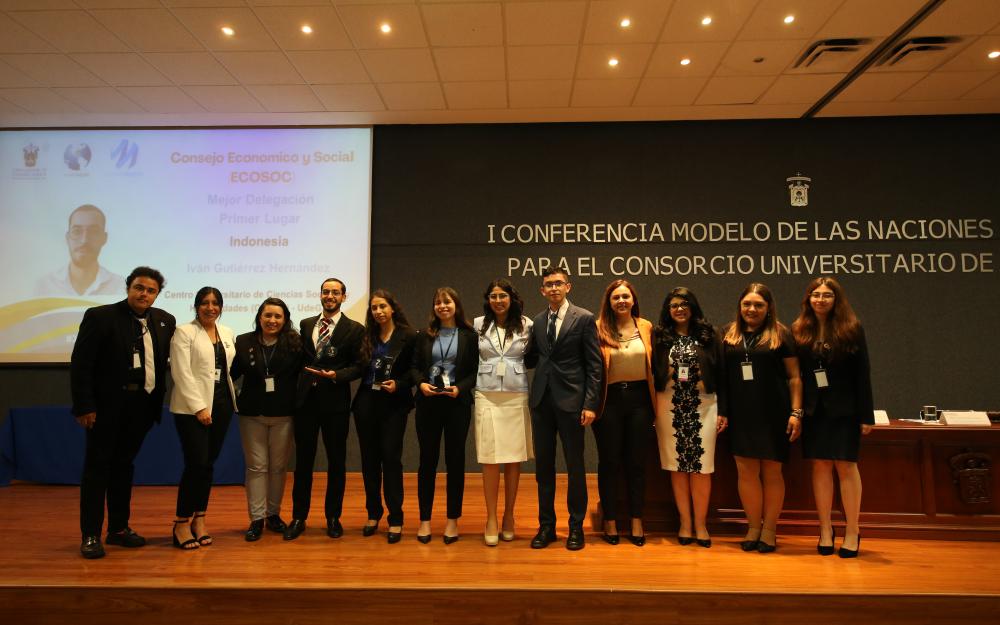 En las actividades del Consejo Económico y Social la mejor delegación fue la de Indonesia, representada por Iván Gutiérrez Hernández, alumno del CUCSH; la delegación distinguida fue la de Grecia, representada por Raquel Bravo Gómez, estudiante del CULagos; en tanto que la mención de honor se la llevó la delegación de Nueva Zelanda, representada por Luis Fernando Mendoza Merino, estudiante de la UAG.