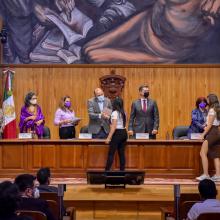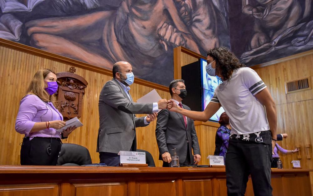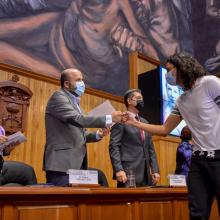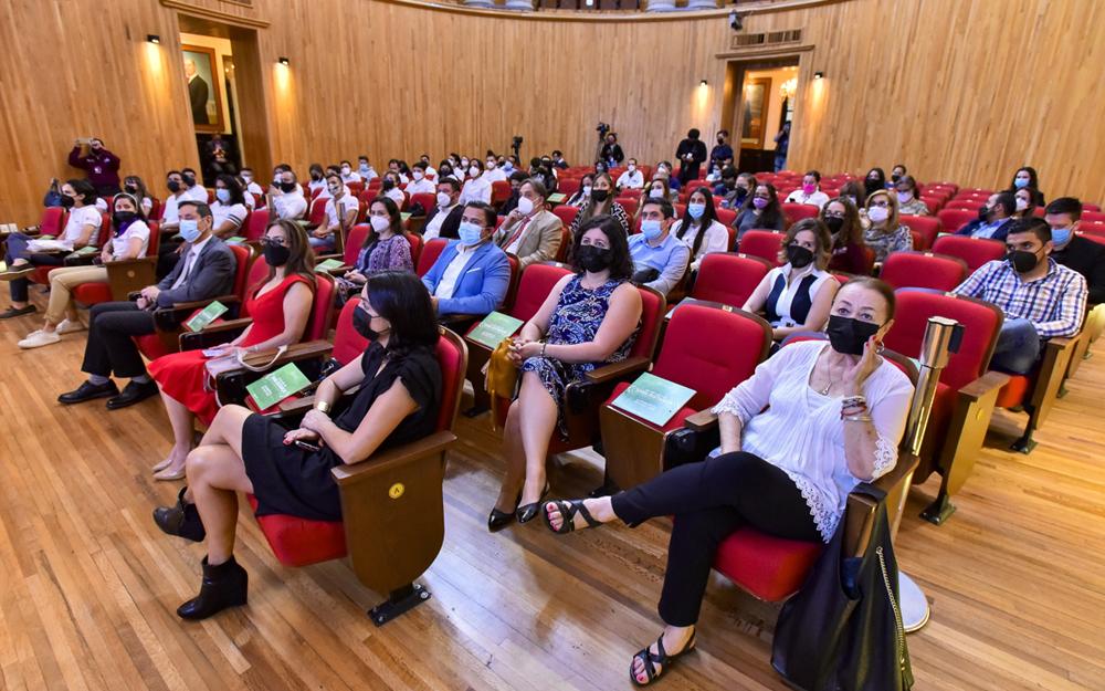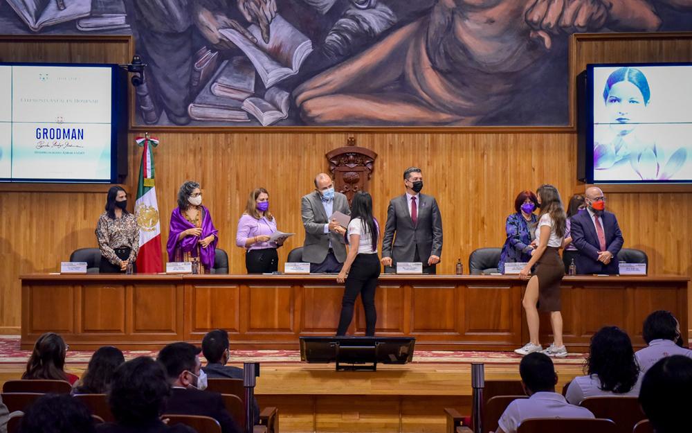 En la ceremonia de homenaje fueron entregadas las constancias de becas a 14 nuevos becarios, y antes de ello un grupo de becarios y exbecarios de su legado participaron en una dinámica de integración que sentará las bases para la creación de la asociación de beneficiarios del Legado Grodman.