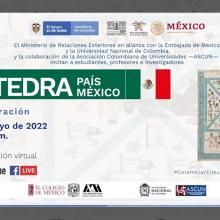 La Vicepresidente y Canciller de Colombia, Marta Lucía Ramírez, realizó el lanzamiento de la Cátedra México en el marco de la iniciativa "Cátedras País", junto al Embajador de México en Colombia, Alejandro García Moreno. El evento se llevó a cabo en el salón Simón Bolívar, el lunes 2 de mayo con la participación de la Dra. Dolly Montoya, rectora de la Universidad Nacional de Colombia; el doctor Luis Fernando Gaviria, Presidente de la Asociación Colombiana de Universidades; el señor Luis Armando Soto, Director de Asuntos Culturales del Ministerio de Relaciones Exteriores y el Director de América del Ministerio de Relaciones Exteriores, el Embajador Luis Antonio Dimaté.