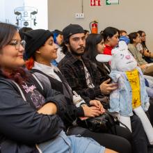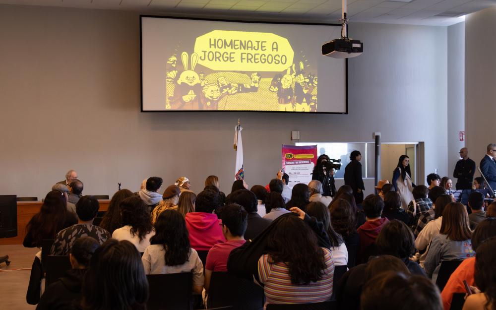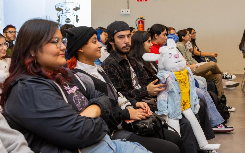 Pero más que agradecimientos, Castillejos compartió algunas recomendaciones con la comunidad universitaria presente, e hizo una analogía sobre el arte y la creatividad: “El arte es perseguido y, a veces, cuando creces, en la escuela te lo hacen sentir así. Todos los que somos artistas pasamos por ‘el despertar al sueño’, todos queremos ser artistas de pequeños; si revisamos nuestros cuadernos, veremos que están repletos de dibujos y siempre los colocamos al centro; en la primaria se van a los márgenes, en la universidad a las últimas hojas y cuando creces, desaparecen”, dijo refiriéndose a los retos que presenta el permanecer creativo y la constancia al dibujar.