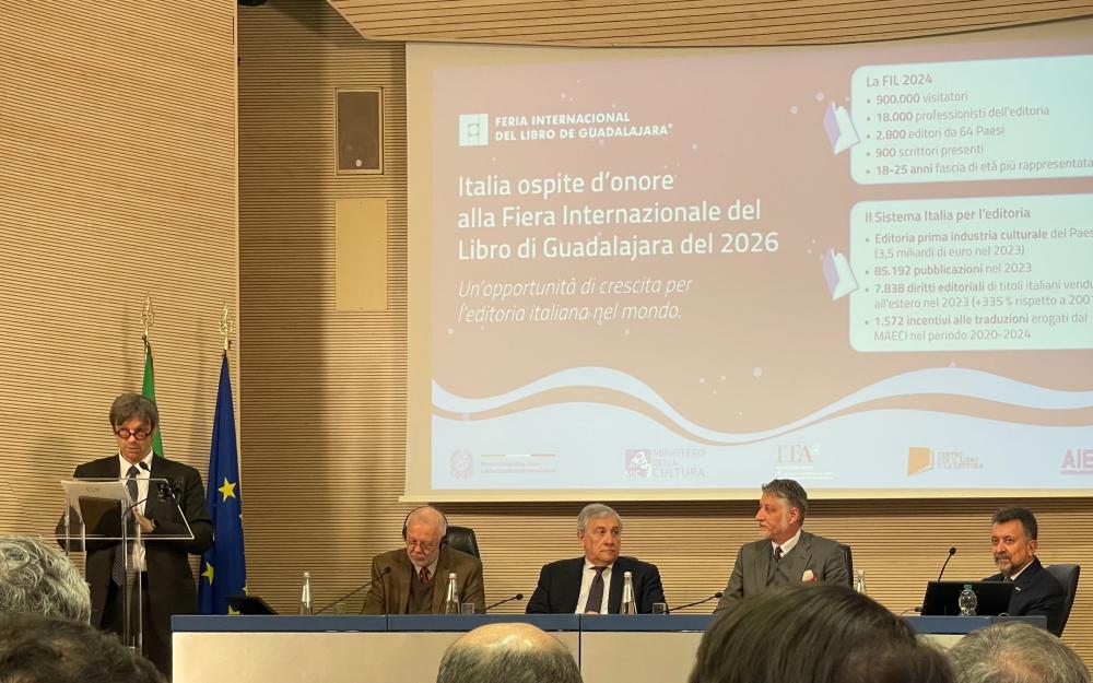 Italia será el país Invitado de Honor de la Feria Internacional del Libro de Guadalajara en 2026. El anuncio se realizó esta mañana en una conferencia de prensa efectuada en la sala Aldo Moro del Ministerio de Asuntos Exteriores y Cooperación Internacional de Italia, en la que participaron Alessandro Giuli, ministro de Cultura de Italia; Antonio Tajani, vicepresidente del Consejo de Ministros y ministro de Relaciones Exteriores y Cooperación Internacional; Carlos García de Alba, embajador de México en Italia; José Trinidad Padilla López y Marisol Schulz Manaut, presidente y directora de la FIL Guadalajara, respectivamente; Matteo Zoppas, presidente de la Agencia para la Promoción Exterior y la Internacionalización Empresarial, así como Innocenzo Cipolletta, presidente de la Asociación Italiana de Editores.