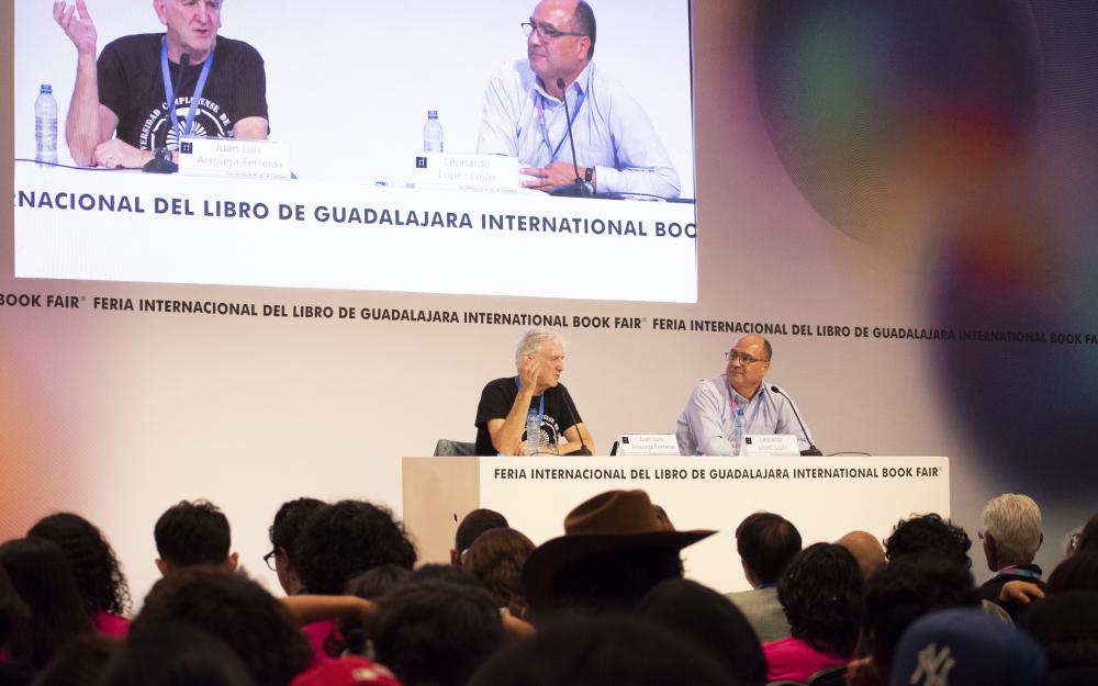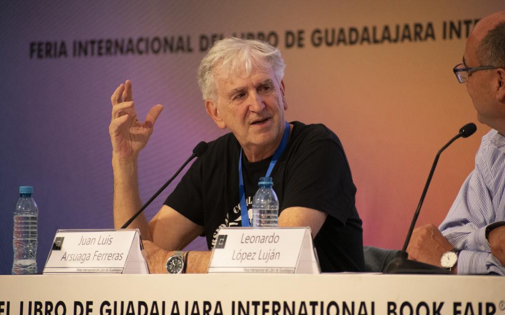 La charla fue moderada por el arqueólogo Leonardo López Luján, quien destacó que Arsuaga Ferreras es el divulgador científico más importante de España; un creador de conocimiento, con el talento y la actitud para transmitirlo y para explicar las cosas difíciles de una manera sencilla.