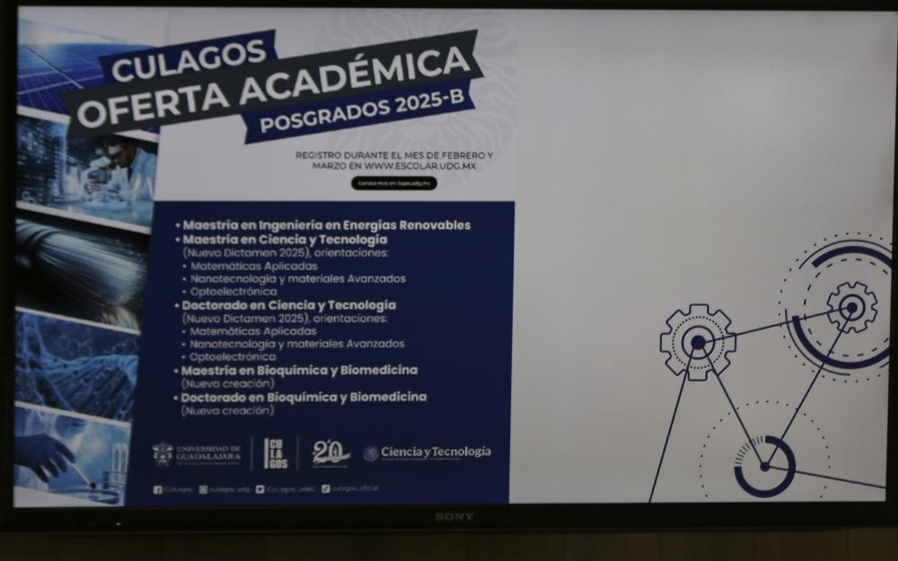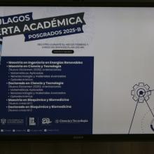 “Tenemos la maestría y el doctorado en Ciencia y tecnología, un programa en el cual se convocan tres orientaciones; la maestría en Bioquímica y biomedicina, con áreas de especialización enfocadas en la bioquímica de alimentos, la neurobiología, la farmacología; y la maestría de Energía renovables, enfocada en el aprovechamiento de la energía, que permite trabajar desde la fabricación de materiales y diseño de nuevos procesos”, expresó.