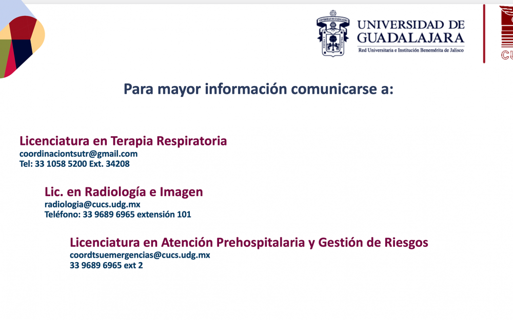 A partir del calendario escolar 2025-B el Centro Universitario de Ciencias de la Salud (CUCS) de la UdeG ofrecerá tres nuevos programas educativos: las licenciaturas en Radiología e imagen; Terapia respiratoria; y Atención prehospitalaria y atención de riesgo, programas que antes se impartían en modalidad de Técnico superior universitario.