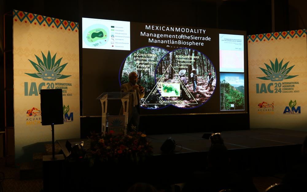 Durante la jornada de actividades del Congreso Internacional de Acuarios IAC (por sus siglas en inglés) 2024, se tuvo la participación del Maestro Emérito de la Universidad de Guadalajara (UdeG), doctor Eduardo Santana Castellón, quien es director del Museo de Ciencias Ambientales (MCA).