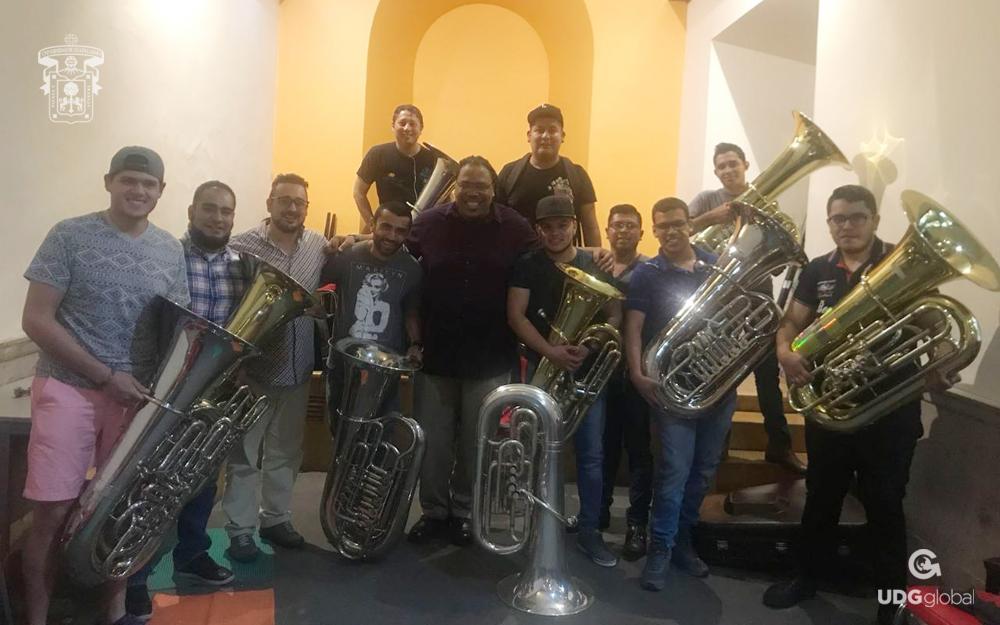 La manera de trabajar con los estudiantes de la UdeG, se basó en la implementación de un masterclass general y otros más por área los cuales, se llevaron a cabo en las instalaciones del Museo de Historia Regional de Guadalajara y en la Escuela de Música de la UdeG. Durante esta jornada académica, participaron más de 80 estudiantes y público en general quienes fueron instruidos en Ensamble, Tuba, Trompeta, Corno Francés y Trombón.