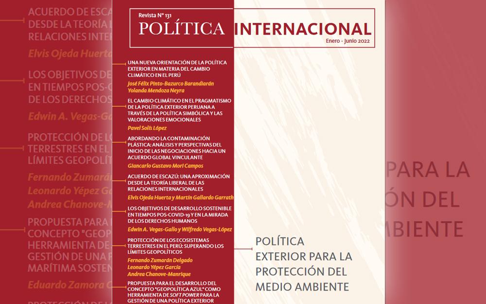 La edición N° 131 (2022-I) de la revista Política Internacional, de la Academia Diplomática del Perú Javier Pérez de Cuéllar, tiene como temática principal la "política exterior para la protección del medio ambiente".
