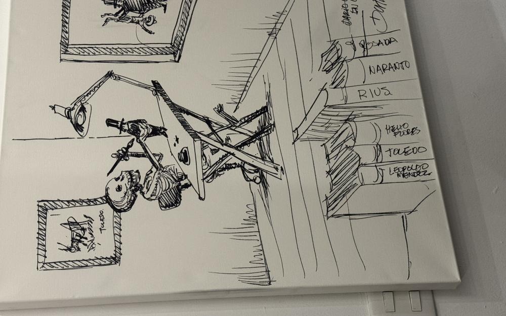 Durante la inauguración, Castillejos compartió con el público su visión de “La Catrina” que dibujó al momento, en la cual evocó a los artistas Francisco Toledo, Leopoldo Méndez y José Guadalupe Posada; así como a los caricaturistas Rius y Naranjo.