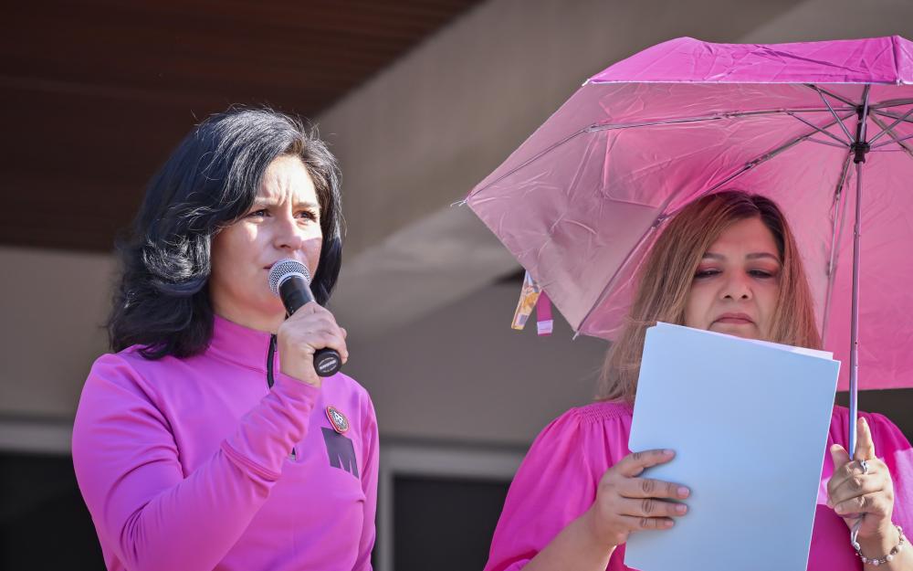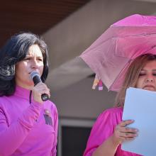 Después, acompañada por la doctora Sandra Rubio, adscrita al área de Recursos Humanos, se emitió un simbólico pase de lista de 128 personas que lucharon o luchan contra el cáncer de mama.