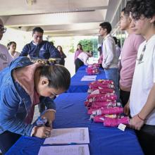El acto fue encabezado por la Coordinadora de Fomento de Desarrollo Integral, maestra Marcela Hernández Aguayo, quien ofreció unas palabras de aliento para quien en este momento se encuentra combatiendo esta enfermedad.