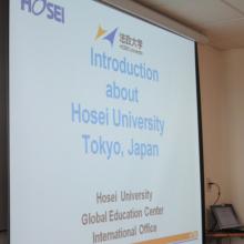 Jun Kojima, señaló que la internacionalización en Hosei University comenzó desde muy temprano en su historia admitiendo y formado estudiantes provenientes de China. Posteriormente presentó los siguientes datos sobre sus programas académicos: